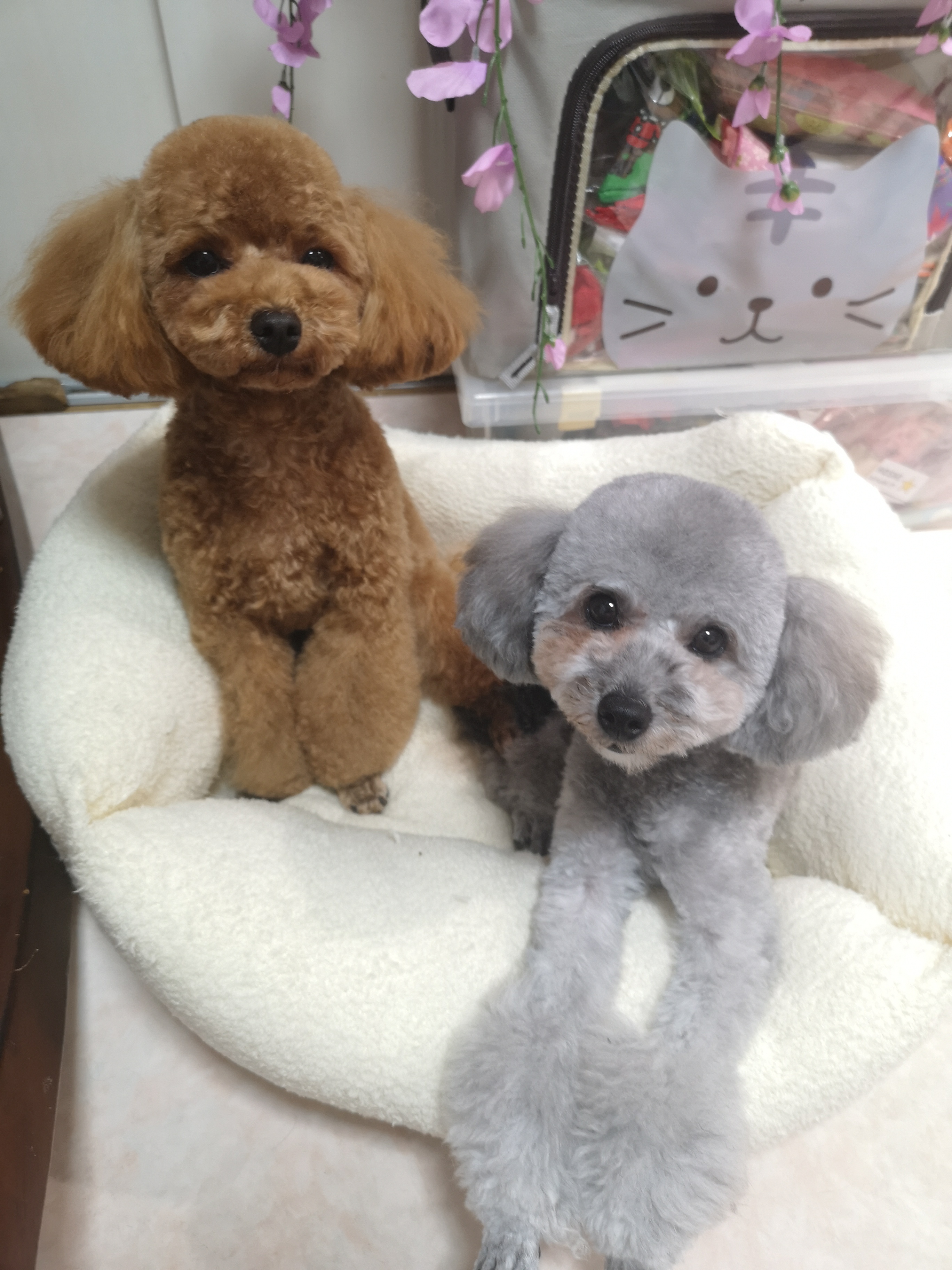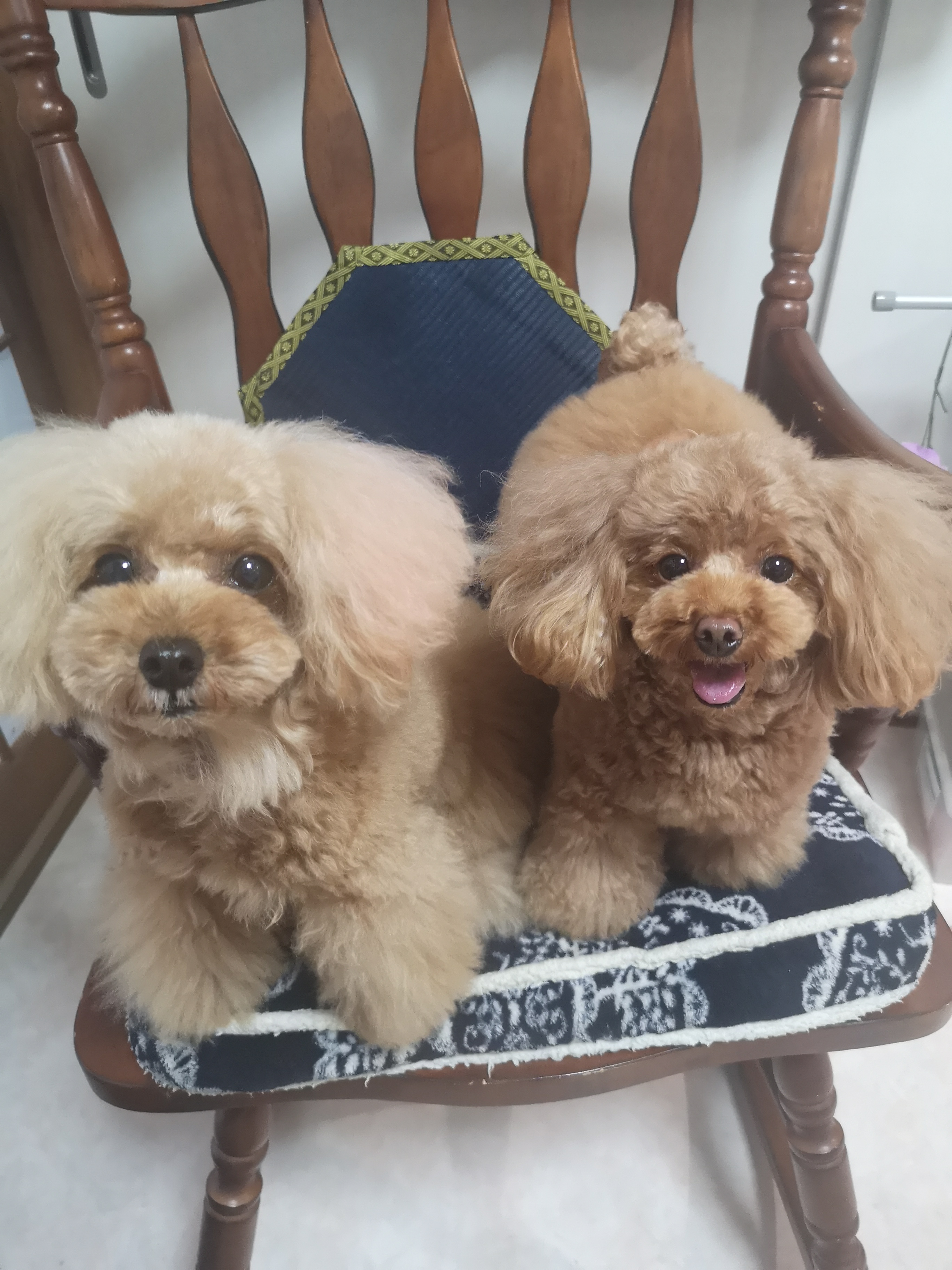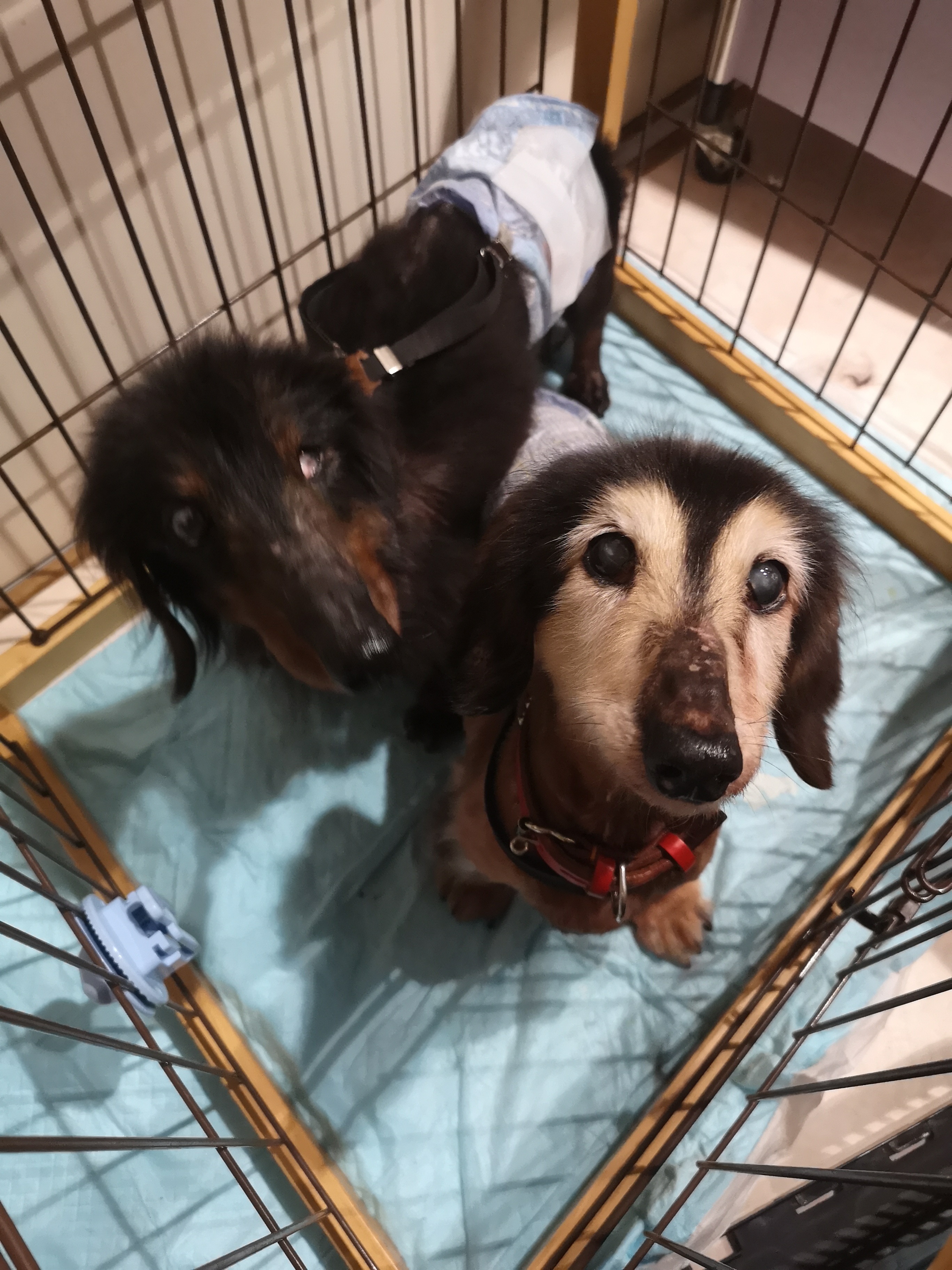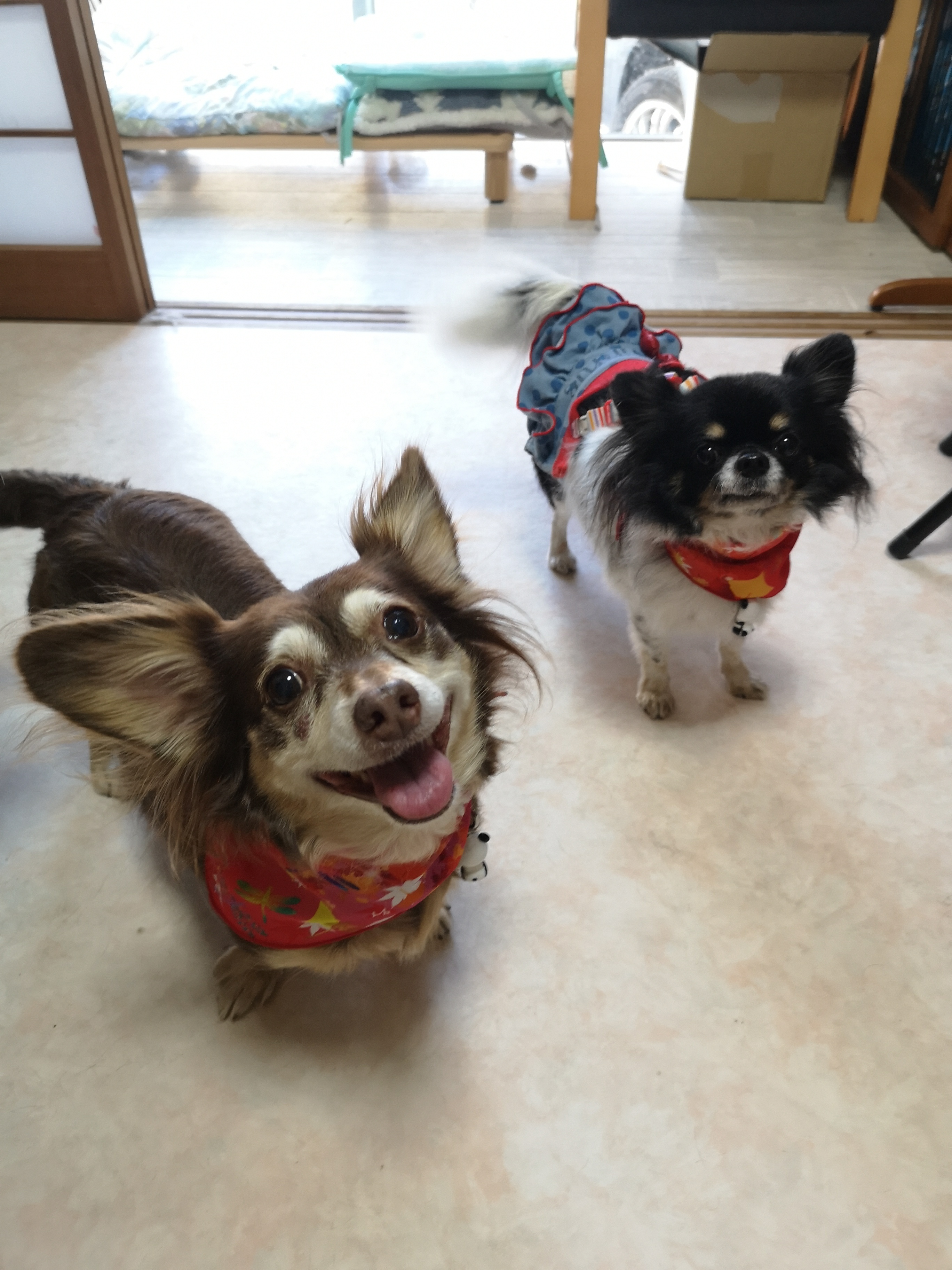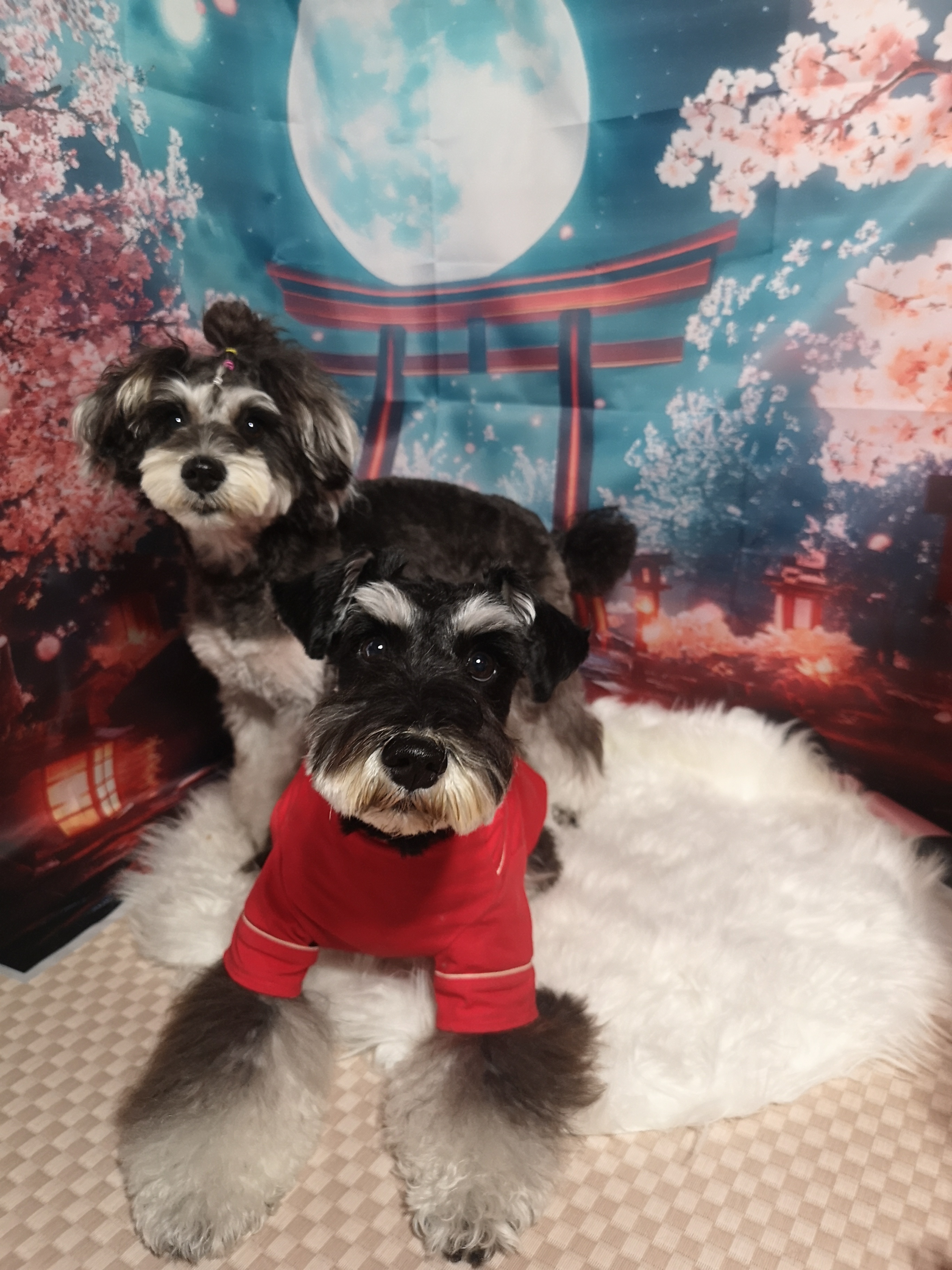 シュナウザーのあんこちゃん(左)小鉄くん(右)